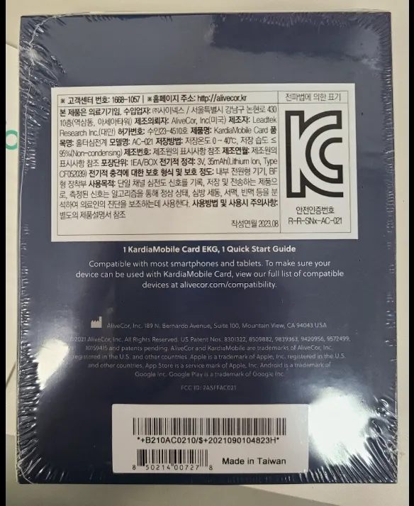카디아모바일 사이넥스 서비스센터(이하”서비스센터”)는 식품의약품안전처의 수입품목허가서를 바탕으로 사이넥스가 수입한 카디아모바일 제품에 한하여 서비스를 제공합니다. 이 제품은 의료기기법에 따른 한글 라벨이 외부 포장 박스에 부착되어 있고, 수입자는 사이넥스로 표기되어 있습니다. (본문 하단에 별도 첨부된 사진 참조)