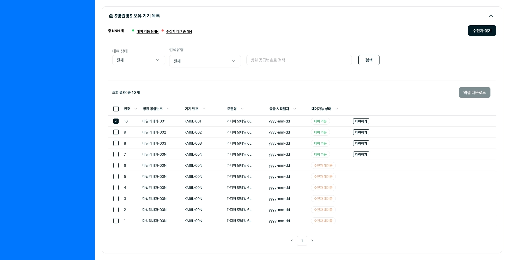 병원에 공급된 ‘카디아모바일’ 보유 기기 목록을 조회・관리할 수 있습니다.