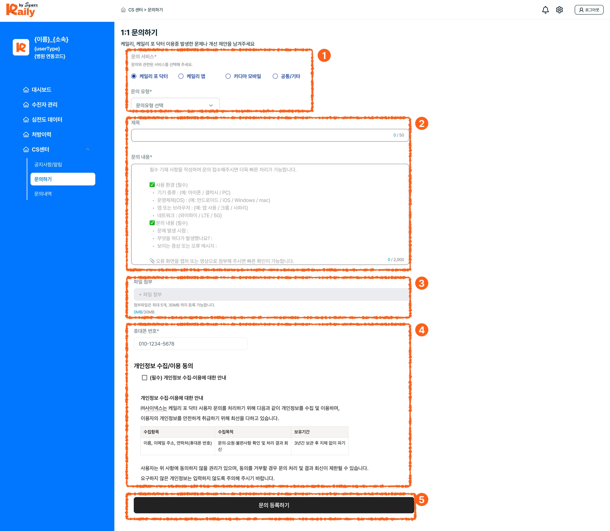 입력한 내용은 그대로 관리자에게 전달되므로, 가능한 상세하게 작성해 주세요.